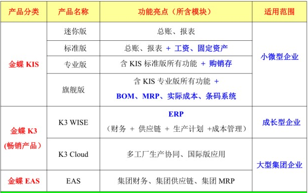 金蝶軟件各版本的功能區(qū)別