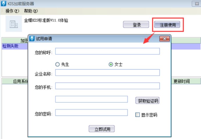 云賬號(hào)可以在金蝶官網(wǎng)直接注冊(cè),新版的加密服務(wù)器上,也提供注冊(cè),如上圖,如果已經(jīng)有了賬號(hào),直接點(diǎn)登錄即可。